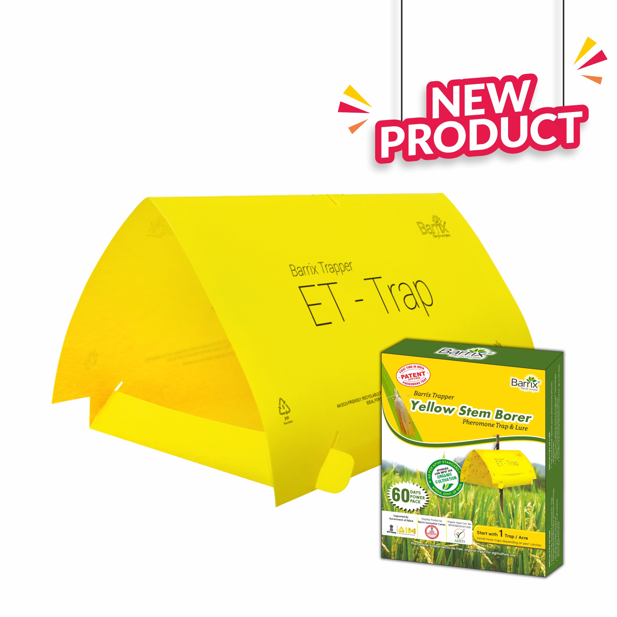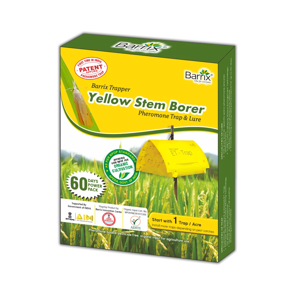Embrace the innovation, Experience the performance of Barrix Trapper Yellow Stem Borer Pheromone Trap & Lure by installing 1 trap per acre and safeguard your paddy crops from the tillering stage. Prevention is better than Cure!